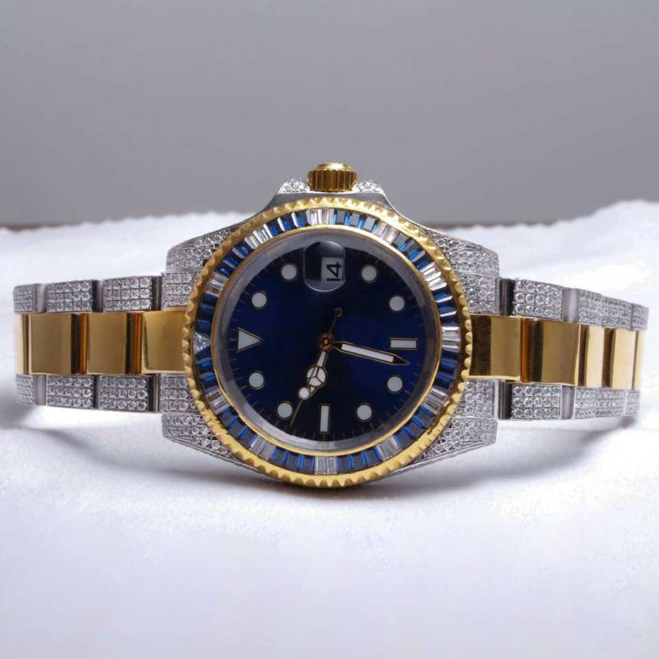 RB นาฬิกากลไกหรูหราสำหรับทุกเพศ, นาฬิกาเพชรโมอิสเพชรที่ไม่ซ้ำกันเคสสแตนเลสสีสันสดใสอะนาล็อกดวงจันทร์เฟสแก้ว