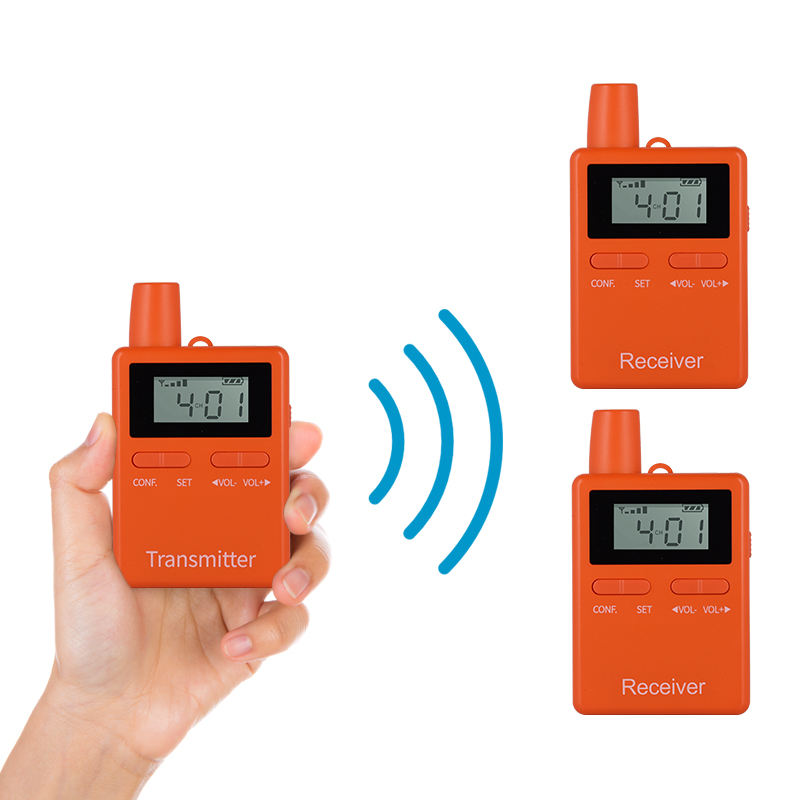 ชุดหูฟังไร้สายสำหรับทัวร์แบบทำงานเดี่ยว RC2401ไมโครโฟนขนาดเล็กสำหรับฝึกม้าวิทยุสื่อสารสองทางกำหนดโลโก้ได้เอง