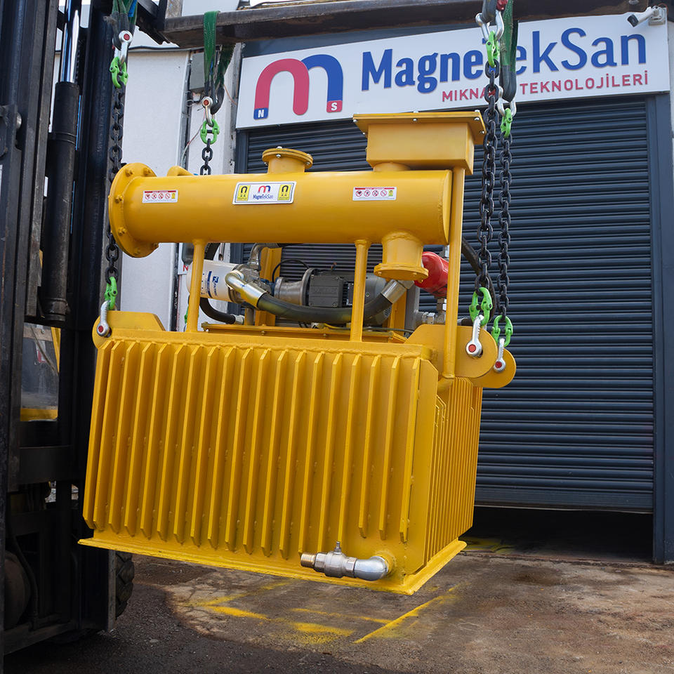 แม่เหล็กไฟฟ้าแบบแขวนสำหรับงานหล่อ RCDF กำลังไฟ 17 กิโลวัตต์ เครื่องแยกแร่ธาตุเหล็กแบบไล่ระดับความเข้มสูง ระยะยก 500 มม. สำหรับงานเหมืองถ่านหิน