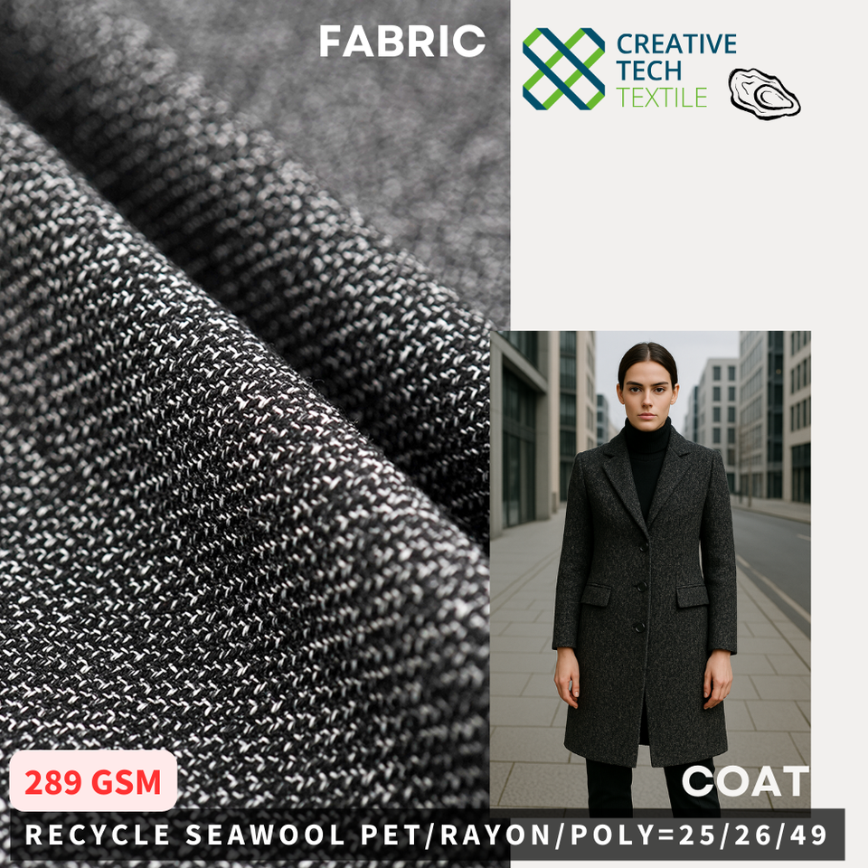 RCO-2B1782 ผ้ารีไซเคิลจากเปลือกหอย PET/เรยอน/โพลี=25/26/49 แฟชั่นรักษ์โลก ผ้าที่ยั่งยืน