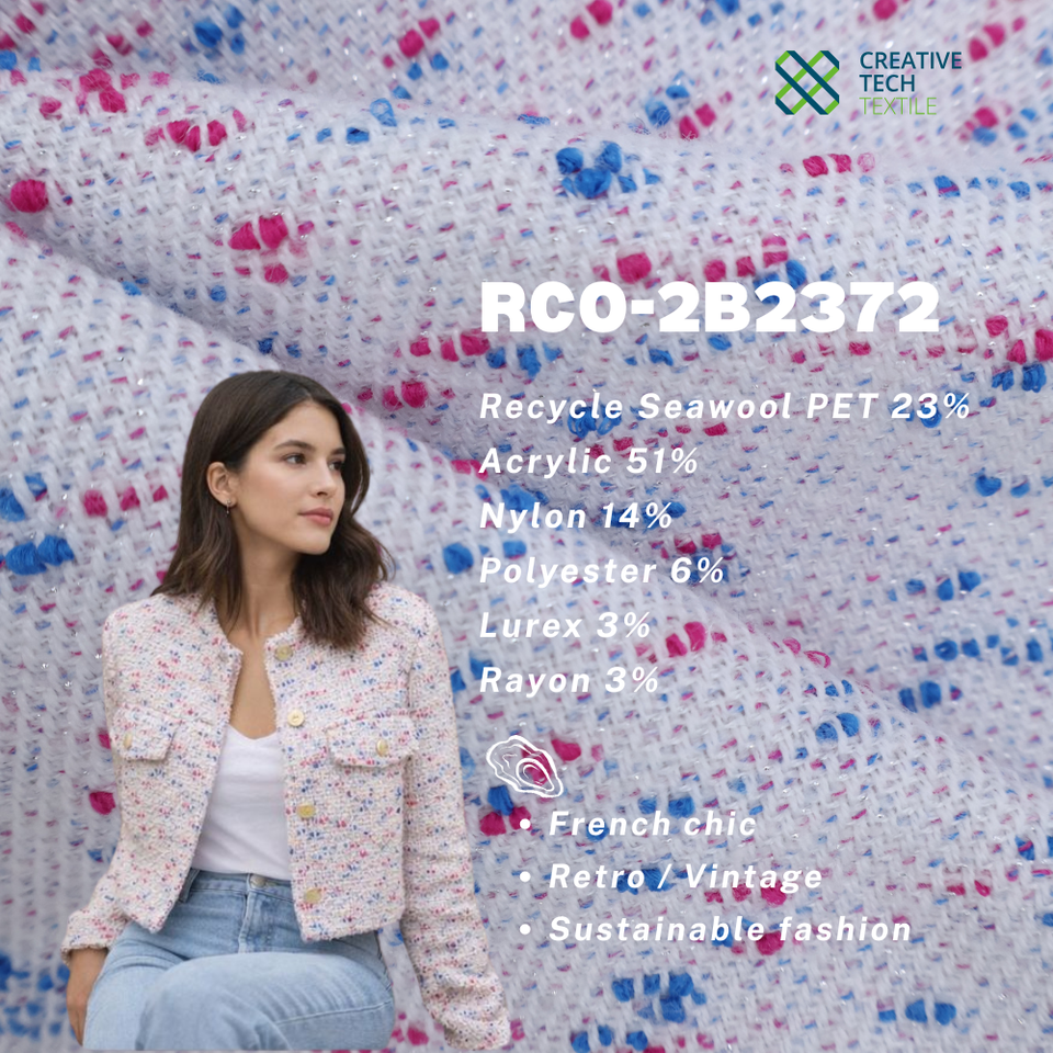 Y/D, ผ้าทวีดแฟชั่นจากวัสดุรีไซเคิล PET ผสมเปลือกหอยนางรมเพื่อสิ่งแวดล้อม