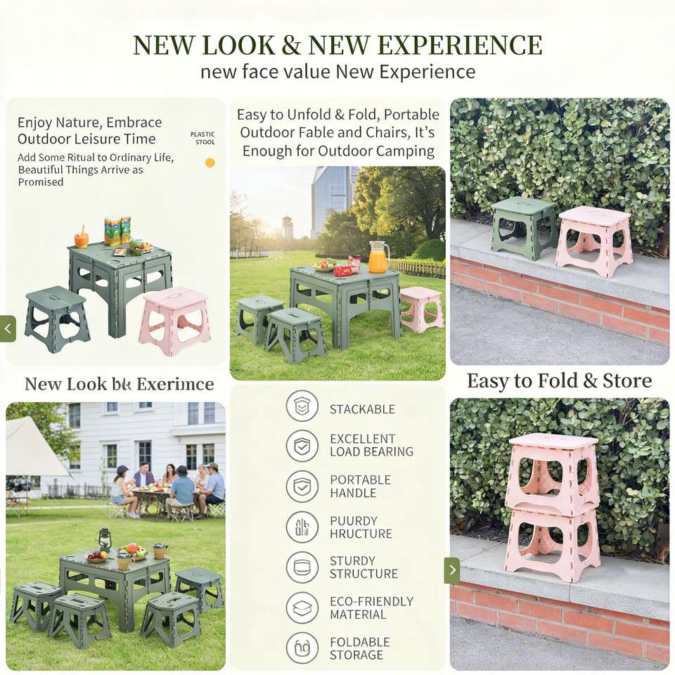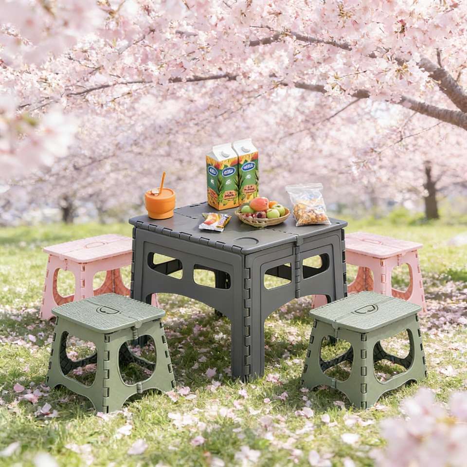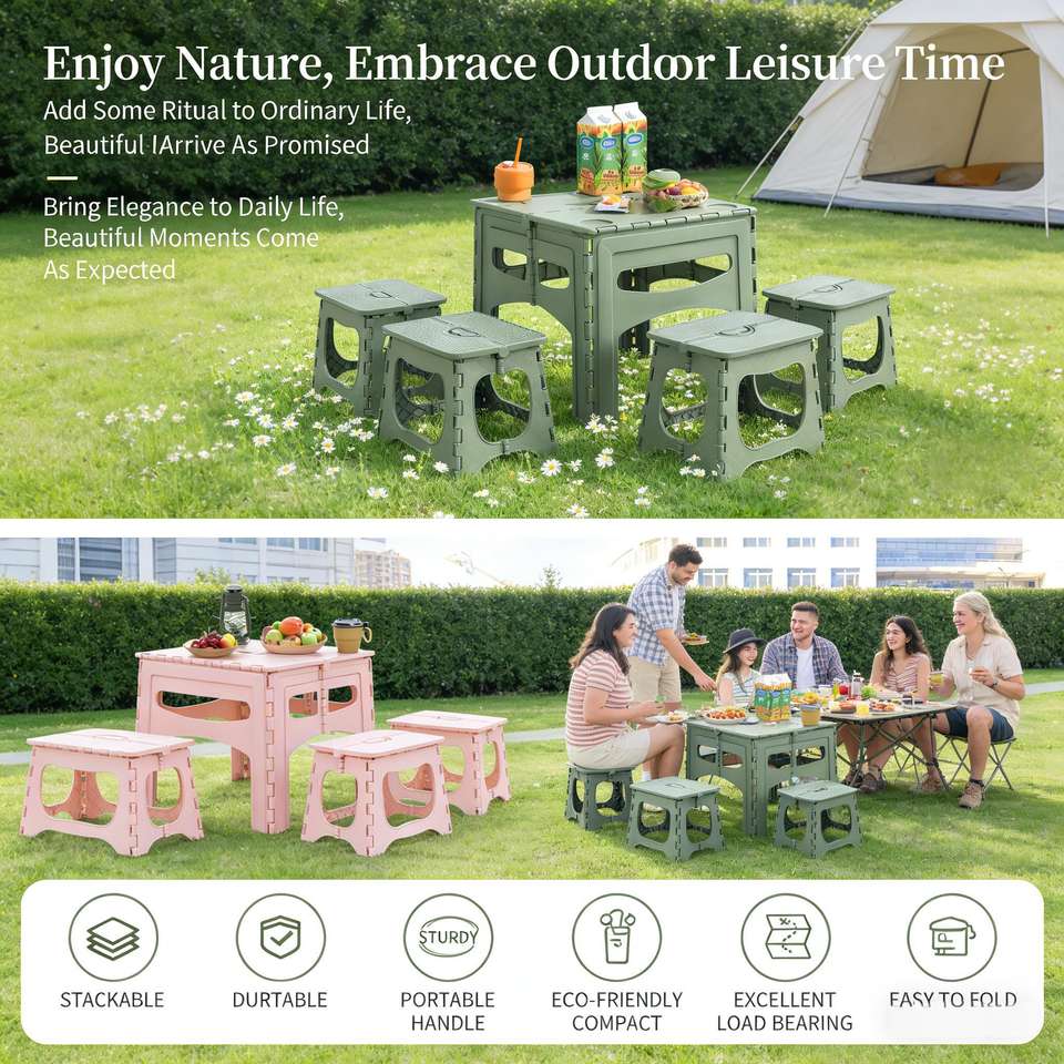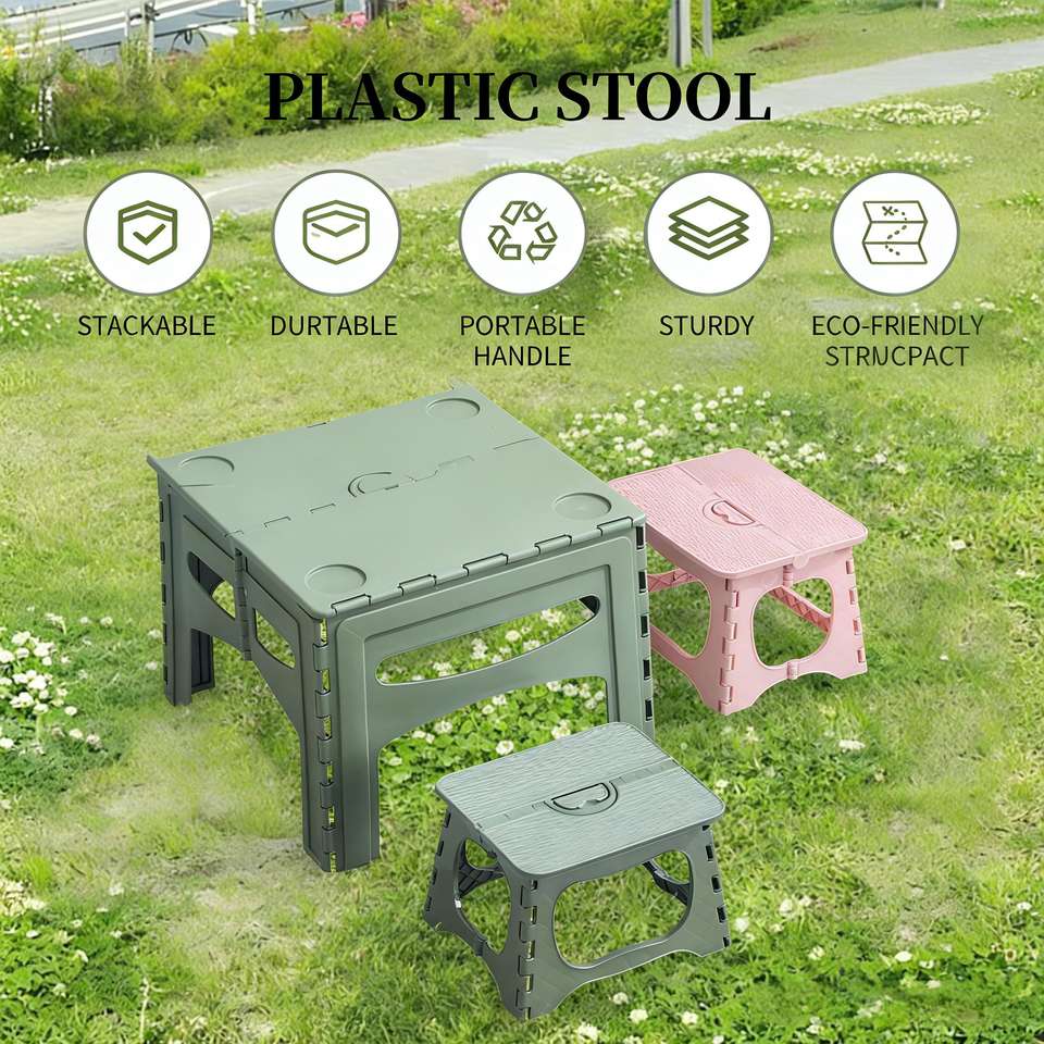 RCVE Foldable Table Chair Set 1 Table + 2 Stools, Sturdy & Durable, Perfect for Outdoor Camping, Hiking, Fishing, and Indoor Use