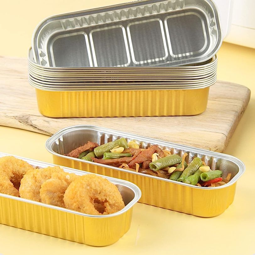 ถาดอบเค้กขนาดเล็กทำจากอลูมิเนียมฟอยล์แบบ RE3G พร้อมฝาปิดถ้วยอลูมิเนียมฟอยล์แบบใช้แล้วทิ้งขนาด6.8ออนซ์ถ้วยเค้กมินิคัพเค้กทรงสี่เหลี่ยมผืนผ้า