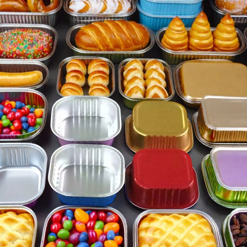 ภาชนะบรรจุอลูมิเนียมฟอยล์ทรงสี่เหลี่ยม240มล. สำหรับขนมและเค้กบริการด้านอาหาร RE3G เบเกอรี่