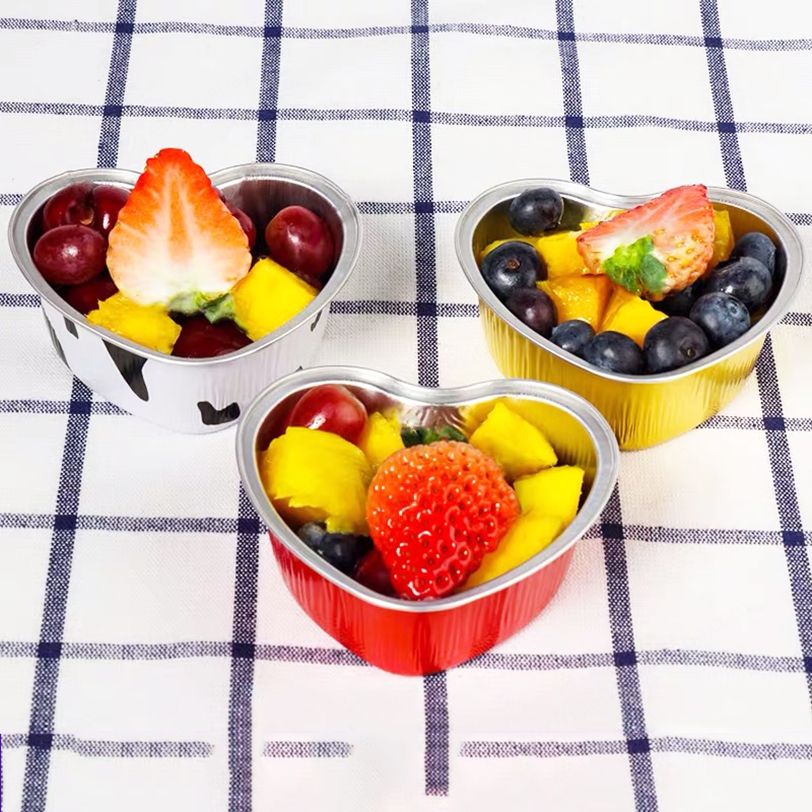 ชื่อ:ภาชนะบรรจุเค้กอาหารอลูมิเนียมฟอยล์รูปหัวใจหลากสี