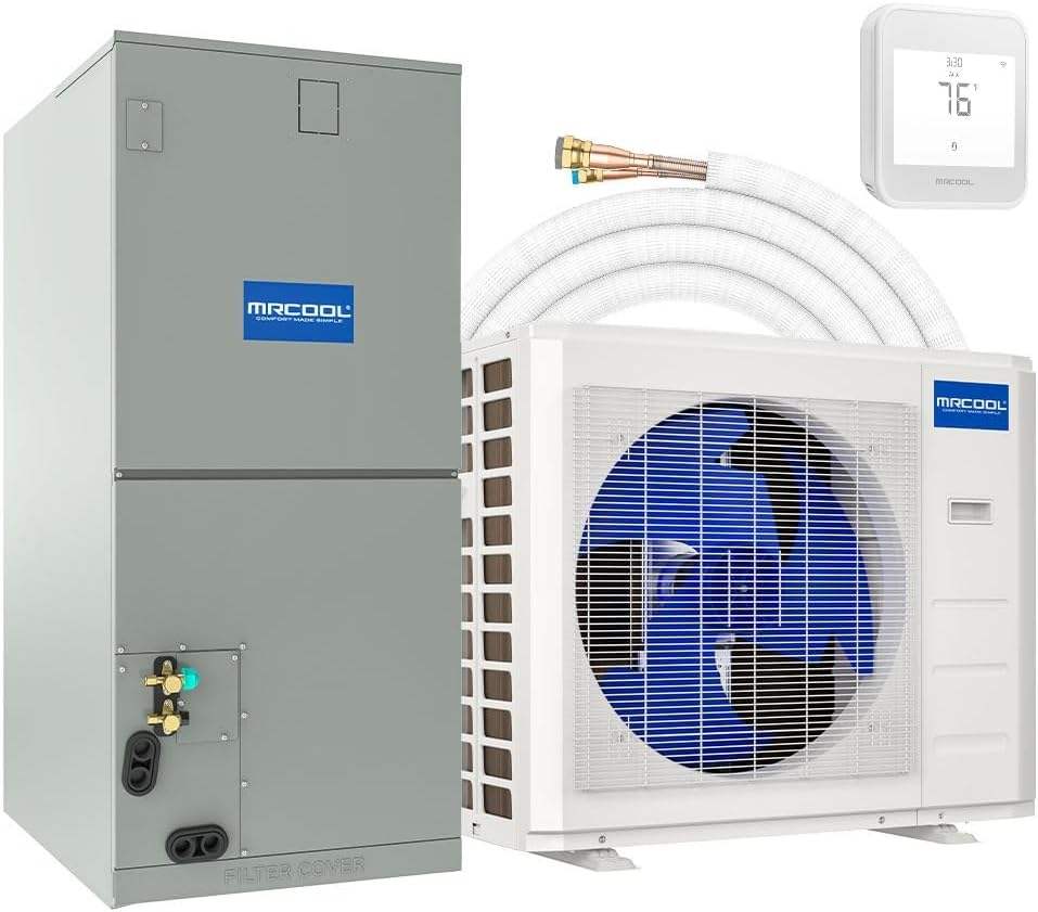 พร้อมจัดส่ง ปั๊มความร้อนแบบแยกส่วน 2.5 ตัน 17 SEER2 ระบบท่อลมแบบแยกส่วนหลายตำแหน่ง 35 ฟุต พร้อมชุดสายไฟสำเร็จรูปสำหรับติดตั้งเอง