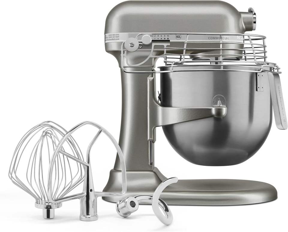 พร้อมจัดส่ง เครื่องผสมอาหารแบบตั้งโต๊ะเชิงพาณิชย์ขนาด 8 ควอร์ต พร้อมตัวป้องกันโถผสม ความเร็ว 10 ระดับ ขับเคลื่อนด้วยเกียร์ สีเงินคอนทัวร์