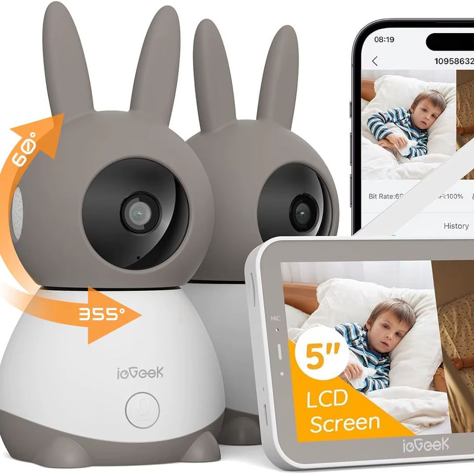 READY2SHIP จอภาพเด็กแยกหน้าจอ ieGeek2K 5 "จอภาพเสียงพร้อมกล้อง2ตัวปลอดภัย
