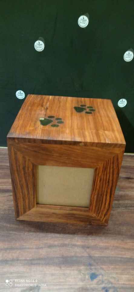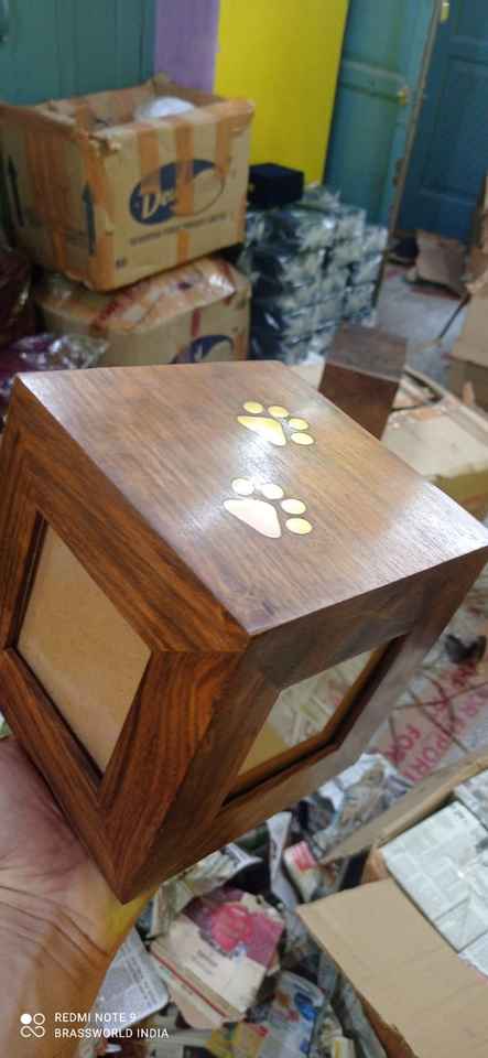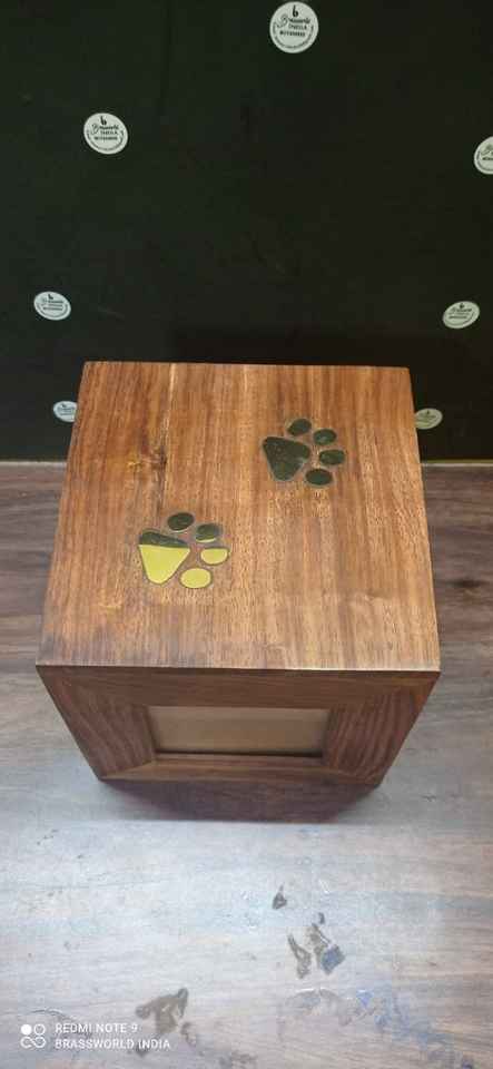 สี่เหลี่ยมผืนผ้ารูปไม้อุ้งเท้าสัตว์เลี้ยงแกะสลักสัตว์เลี้ยงฌาปนกิจศพ URN อุปกรณ์โดย Brassworld อินเดีย