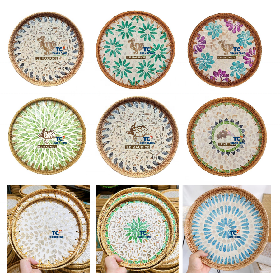 ถาดหวายมุกทรงสี่เหลี่ยมผืนผ้าและถาดหวายทรงกลม Ile Maurice | จัดส่งเร็วจากผู้ผลิตเวียดนาม