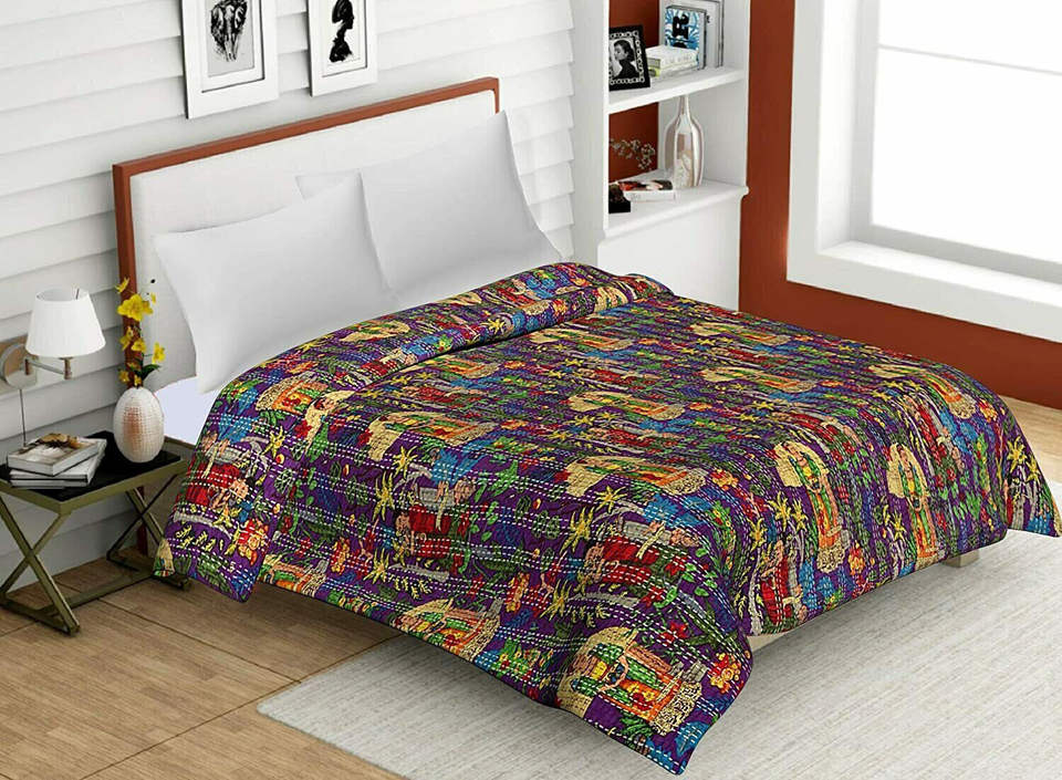 Tropicana Kantha ผ้าห่มวินเทจผ้าฝ้ายผ้าคลุมเตียงผ้าคลุมเตียงผ้าห่มตกแต่งแฮนด์เมด Kantha throws ขายส่ง