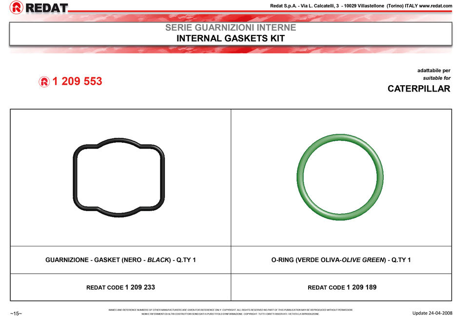 ชุดปะเก็นภายในคุณภาพสูง REDAT 1209553 ผลิตในอิตาลี เหมาะสำหรับเครื่องยนต์ดีเซล Caterpillar C15 C18 3406E Perkins หัวฉีดน้ำมันเชื้อเพลิง