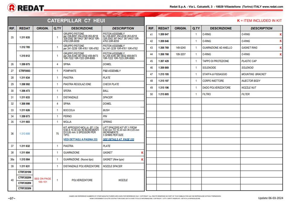 เหมาะสำหรับแอพลิเคชัน OEM (reman):10R-4761 10R-4762 10R-4763 10R-7222 10R-7223 20R-8059 20R-8065