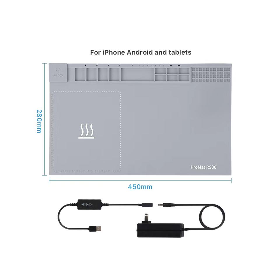 REFOX RS30 ESD แผ่นทำความร้อนซ่อมโทรศัพท์,แผ่นซิลิโคนป้องกันไฟฟ้าสถิตย์สำหรับซ่อมเมนบอร์ดหน้าจอ LCD โทรศัพท์มือถือ
