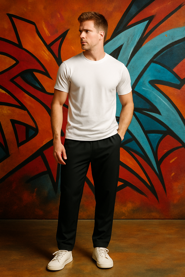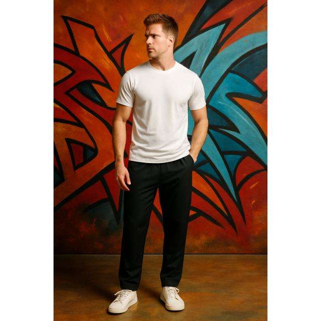 กางเกงคาร์โก้ทรงปกติ ผ้าโพลีเอสเตอร์ผสม เป็นมิตรกับสิ่งแวดล้อม ทนทาน ผ้าปักลาย สีดำ ไซส์ S M L XL XXL ยี่ห้อ OSCA INTERNATIONAL
