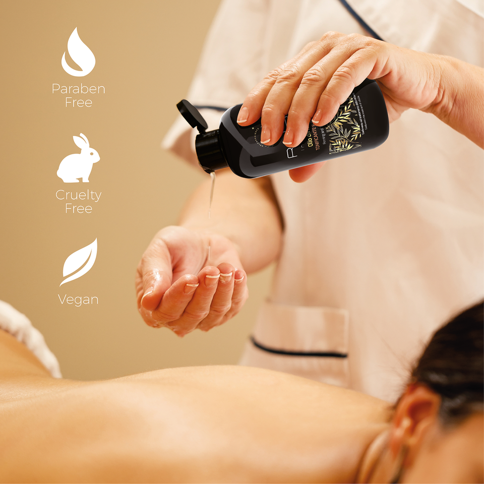 น้ำมันนวดตัวสูตรทองคำ แบรนด์ส่วนตัว 250 มล. | เครื่องนวดกระชับสัดส่วน OEM ODM ผสมสารสกัดอัลมอนด์ มิ้นท์ และผลไม้ตระกูลส้ม จากอิตาลี