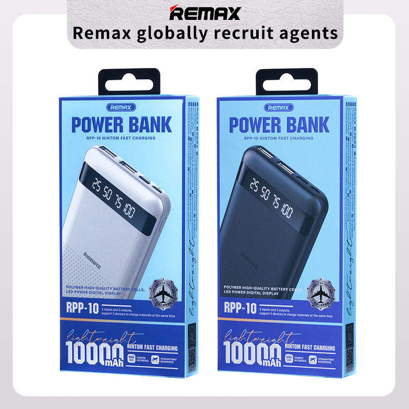 REMAX Hintom RPP-10 พาวเวอร์แบงค์ชาร์จเร็ว 2.4A ความจุ 10000mAh ดีไซน์บางเฉียบ พกพาสะดวก ช่องเสียบ Type-C และ Micro USB พร้อมพอร์ต USB คู่ สำหรับอุปกรณ์มือถือ