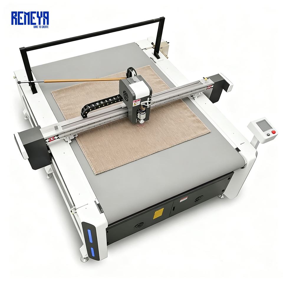 เครื่องตัดผ้าระบบซีเอ็นซีกึ่งอัตโนมัติ REMEYA พร้อมมอเตอร์สำหรับตัดผ้าเสื้อผ้า ใบมีดสั่นสะเทือน พื้นที่ทำงาน 1600x2500 มม. รับประกัน 5 ปี