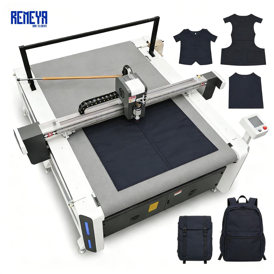 เครื่องตัดผ้าแบบกึ่งอัตโนมัติ REMEYA สำหรับตัดเสื้อผ้าหลายชั้น แบบ Flatbed ตัดแพทเทิร์นเสื้อเชิ้ต ผ้า และวัสดุต่างๆ ควบคุมด้วย PLC พร้อมมอเตอร์