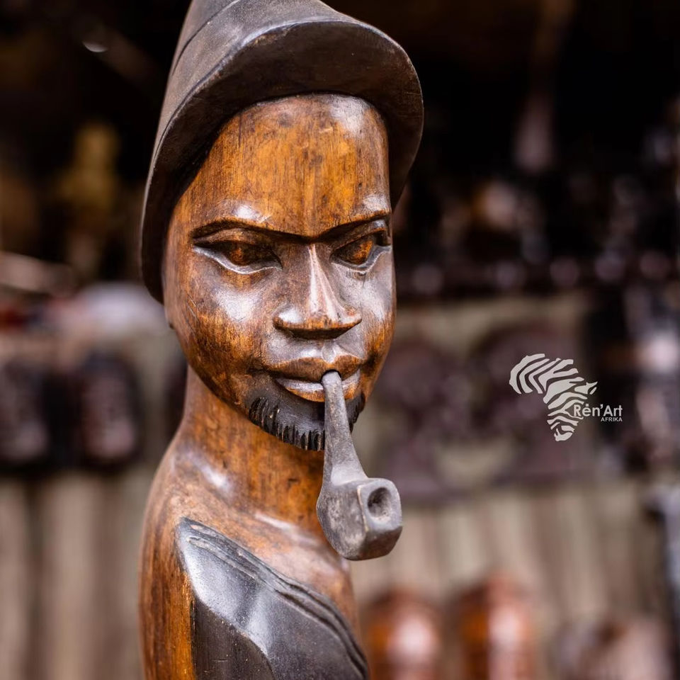 งานแกะสลักไม้ทำมือ REN ART AFRIKAN SARL OEM รูปปั้นบรรพบุรุษขนาดใหญ่ (60-100 ซม.) สำหรับโรงแรมระดับ 5 ดาวและโครงการสปา