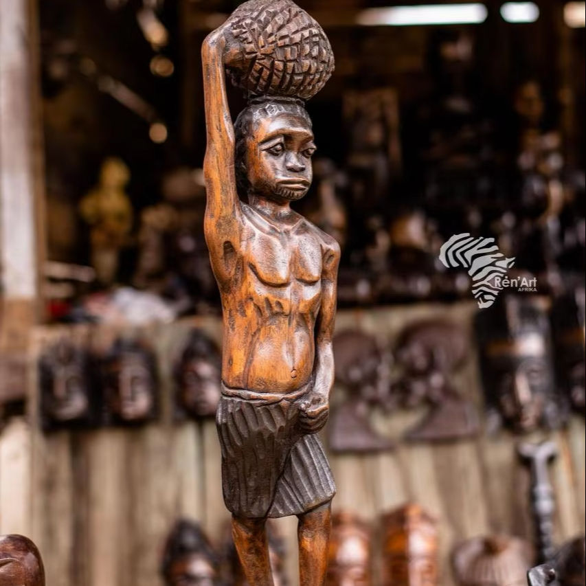 REN ART AFRIKAN SARL ขูดและแกะสลักไม้ด้วยดอกรีดและสิ่วแบบดั้งเดิม มองเห็นรอยตัดแต่งของเครื่องมือ งานฝีมือแท้ที่ควรค่าแก่การชื่นชม