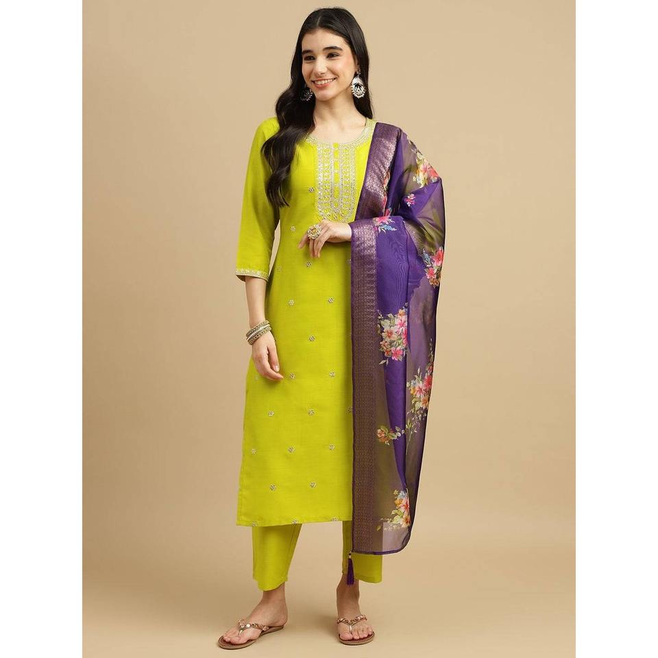 Rending เรยอน slub Coding Work TOP BOTTOM with dupatta สีเหลือง