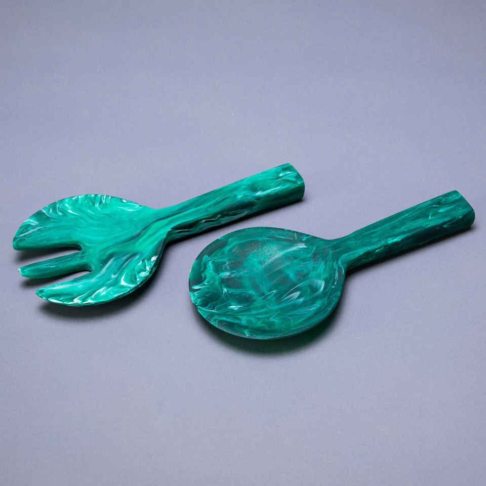 ชุดช้อนส้อมเรซิ่นทำมือสีสันสดใส 100% สำหรับใช้ในบ้านและโรงแรม ประกอบด้วยช้อนไอศกรีมและช้อนเสิร์ฟสลัด