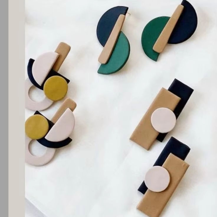 RESIN WOODEN STRIKING WARMTH DANGLES Gold Foil Black White Resin Heart Shape Earrings Square Round Geometric Wooden Resin Drop