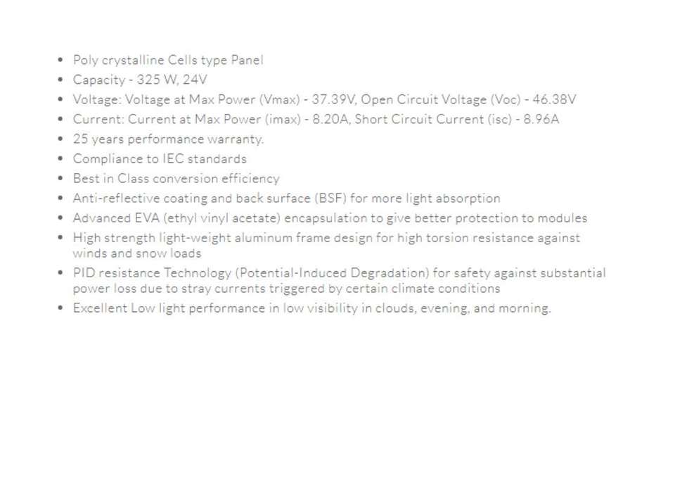 คุณสมบัติ:แผงโซลาร์โมโนประสิทธิภาพสูง