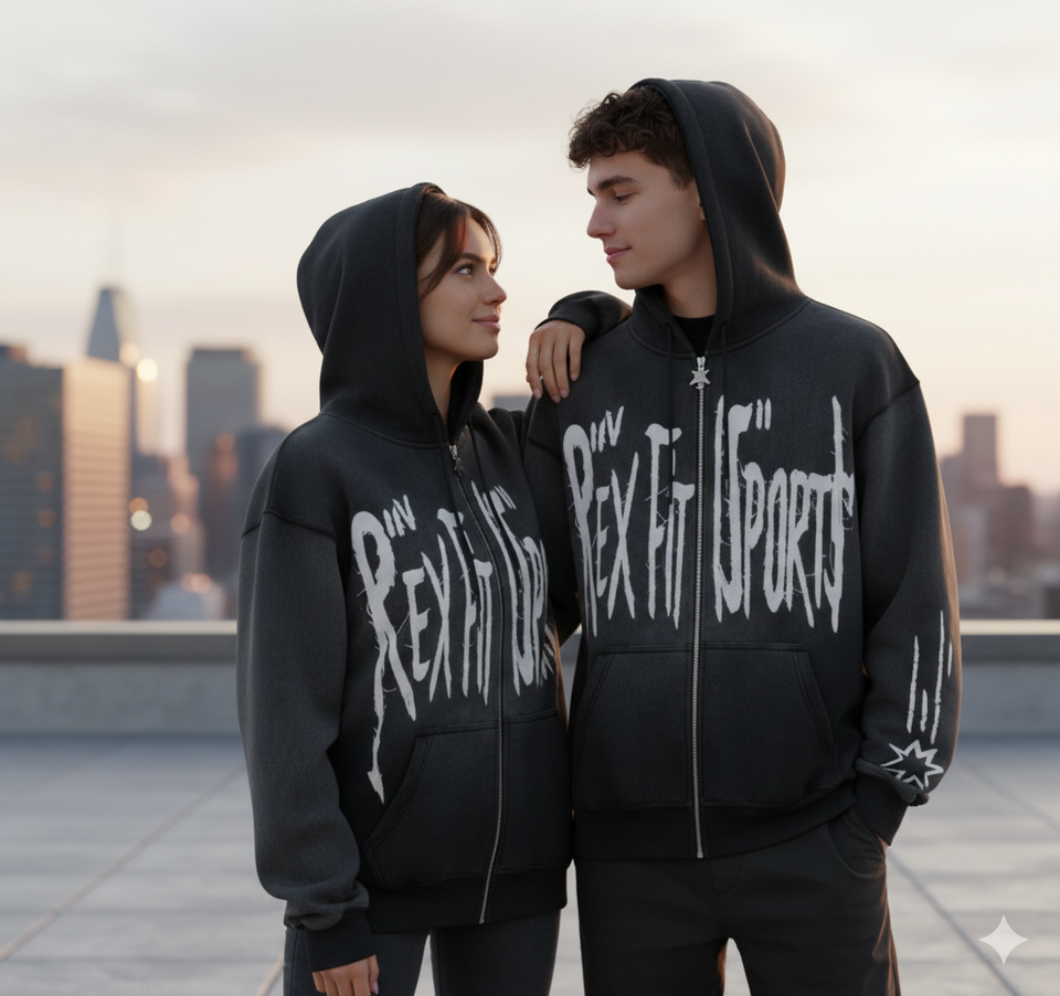 เสื้อฮู้ดดี้ปักลาย REXFIT SPORTS รุ่นสั่งทำพิเศษสำหรับผู้ชาย ทรงโอเวอร์ไซส์ สไตล์สตรีทแวร์ ปี 2026 พร้อมแพทช์ปักลาย สำหรับทุกเพศ