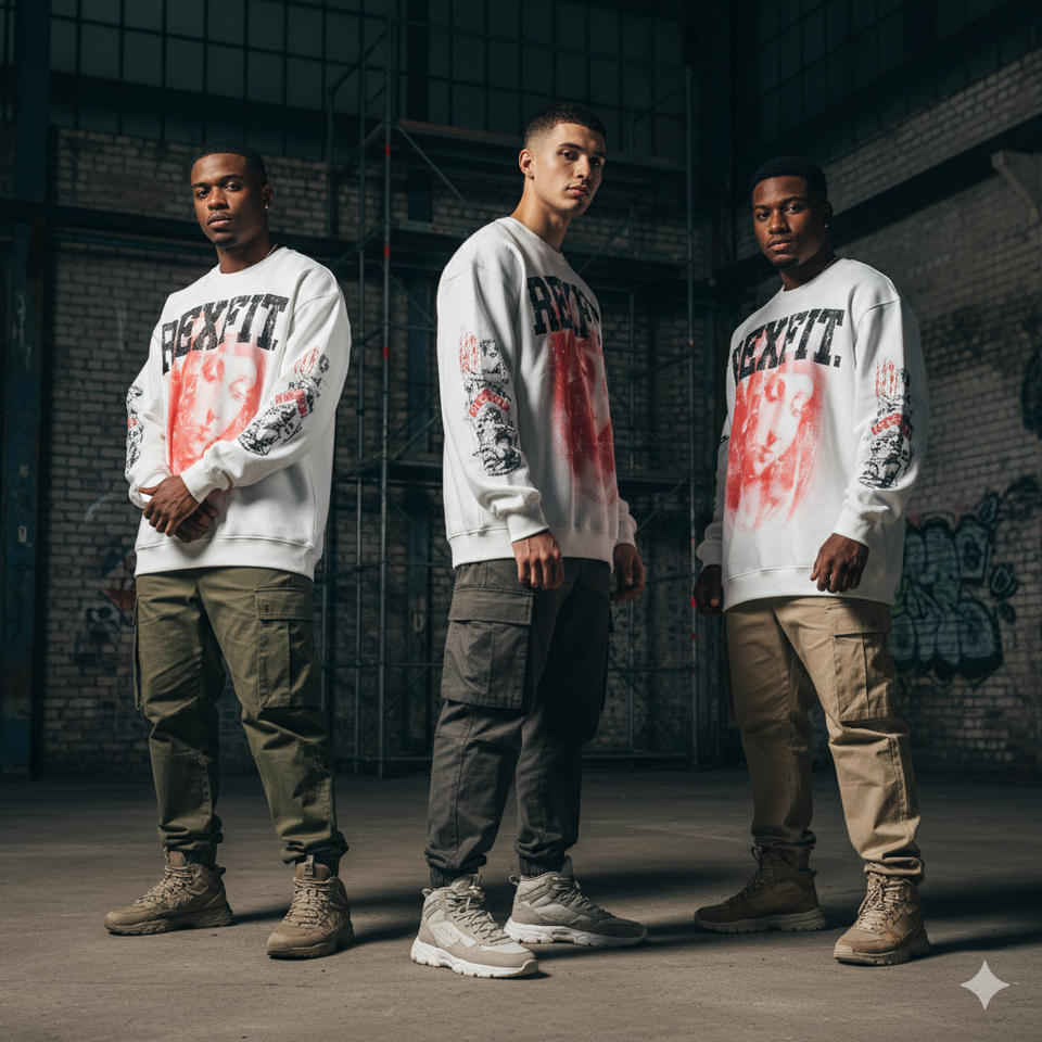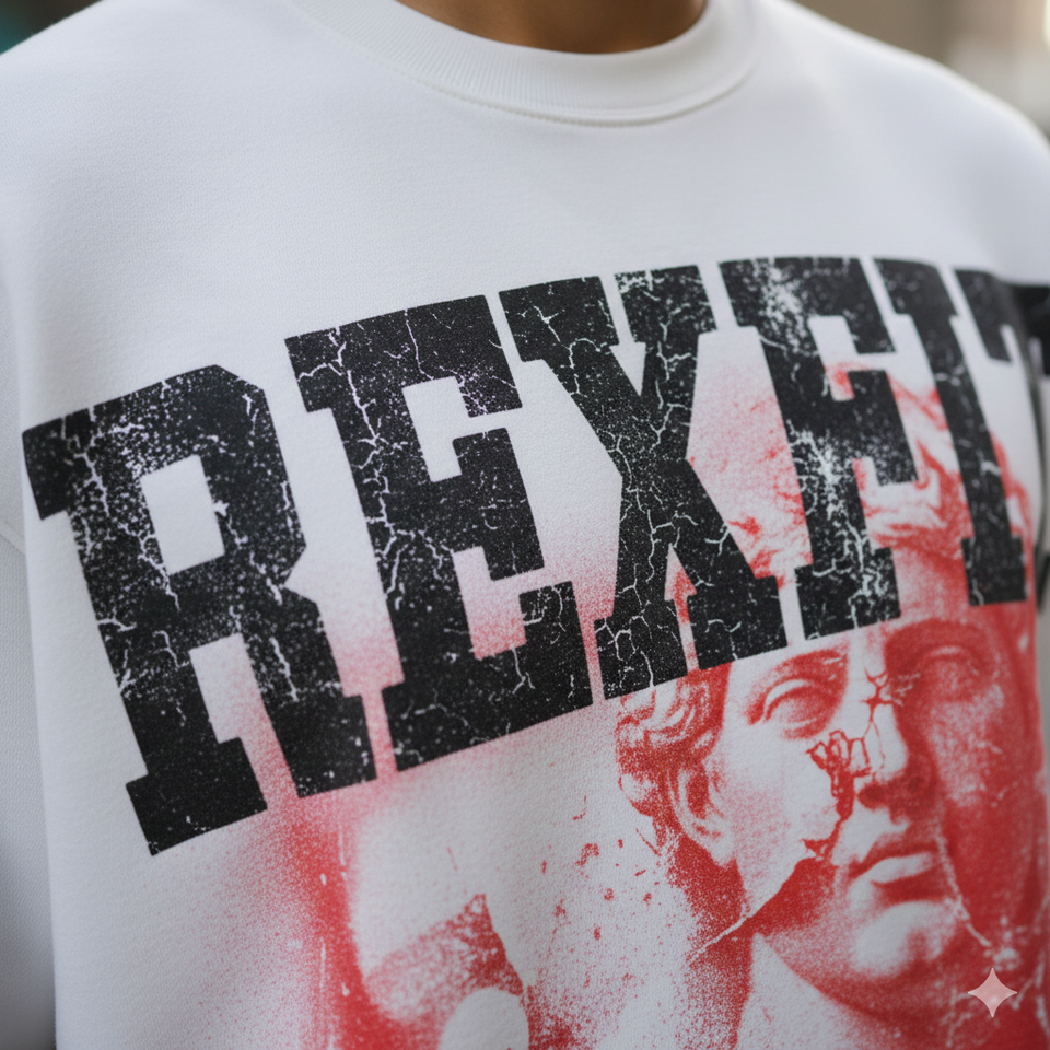เสื้อยืดแขนยาวทรงโอเวอร์ไซส์ลายกราฟิกสไตล์สตรีทแวร์ลำลองแบบใหม่จาก REXFIT SPORTS ตัดเย็บด้วยผ้าฝ้ายพร้อมขอบดิบ พิมพ์ลายด้วยเทคนิค DTG สำหรับผู้ชาย