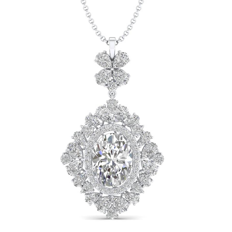 สร้อยคอจี้เพชรโมอิสซาไนต์ทรงรี ดีไซน์คลาสสิกขายดีของ REYES ทำจากทองคำแท้ 14K เหมาะสำหรับงานปาร์ตี้ สำหรับผู้หญิง