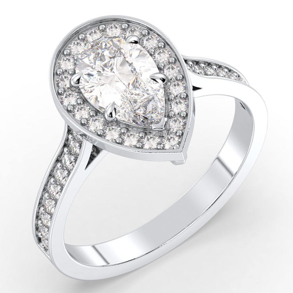แหวนหมั้นเพชรโมอิสซาไนต์ทรงลูกแพร์ 1 กะรัต ดีไซน์คลาสสิกขายดีของ REYES ทำจากเงินแท้ 925 ขายส่งเครื่องประดับคุณภาพสูง