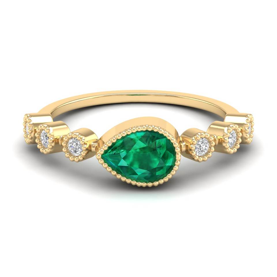 Reyes คลาสสิก14K สีขาวทอง Moissanite แหวนลูกแพร์ตัด0.75กะรัตมรกตอัญมณีแหวนหมั้นสำหรับเครื่องประดับในโอกาสพิเศษ