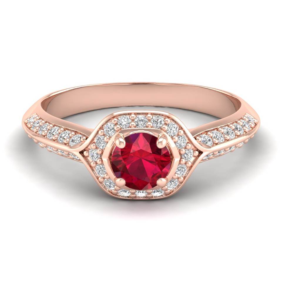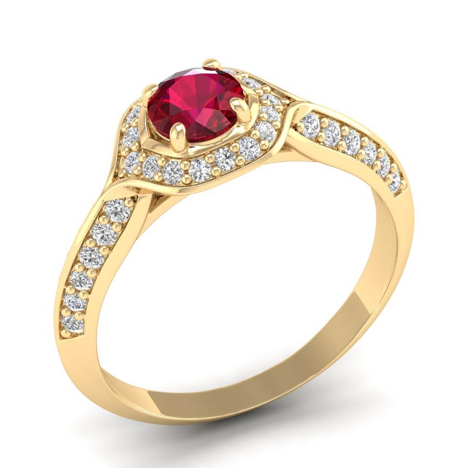 แหวนทองคำแท้ 14K ดีไซน์คลาสสิก REYES ประดับพลอยทับทิมทรงกลม 0.5 กะรัต พร้อมวงแหวนโมอิสซาไนต์ รับรองโดย GRA เครื่องประดับชั้นดี