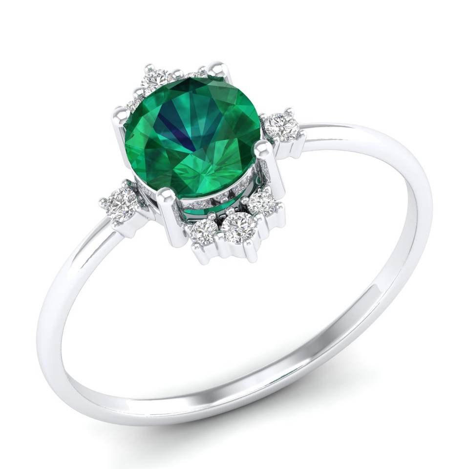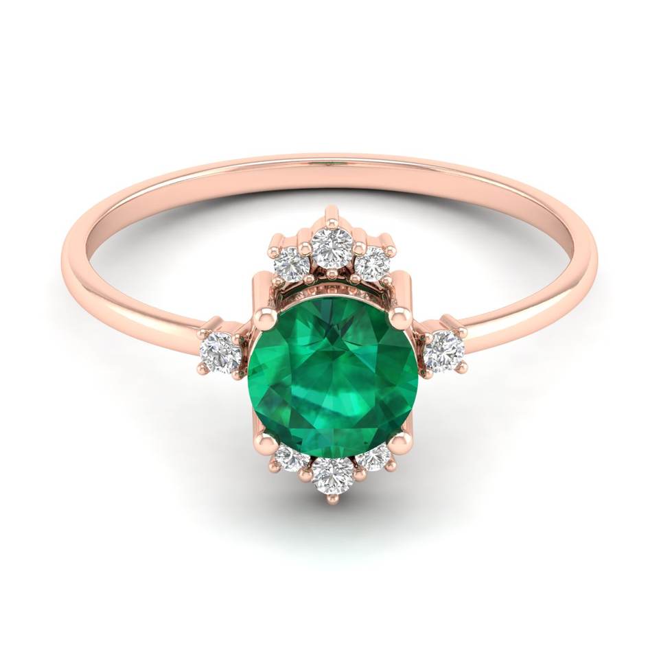 แหวนเพชรทรงกลมเจียระไนแบบบริลเลียนต์ 0.84 กะรัต ประดับพลอยมรกต ดีไซน์คลาสสิก REYES ทองคำแท้ 14K สำหรับผู้หญิง รับผลิตตามแบบ OEM ODM เครื่องประดับคุณภาพ
