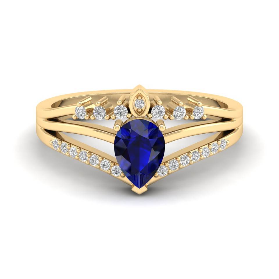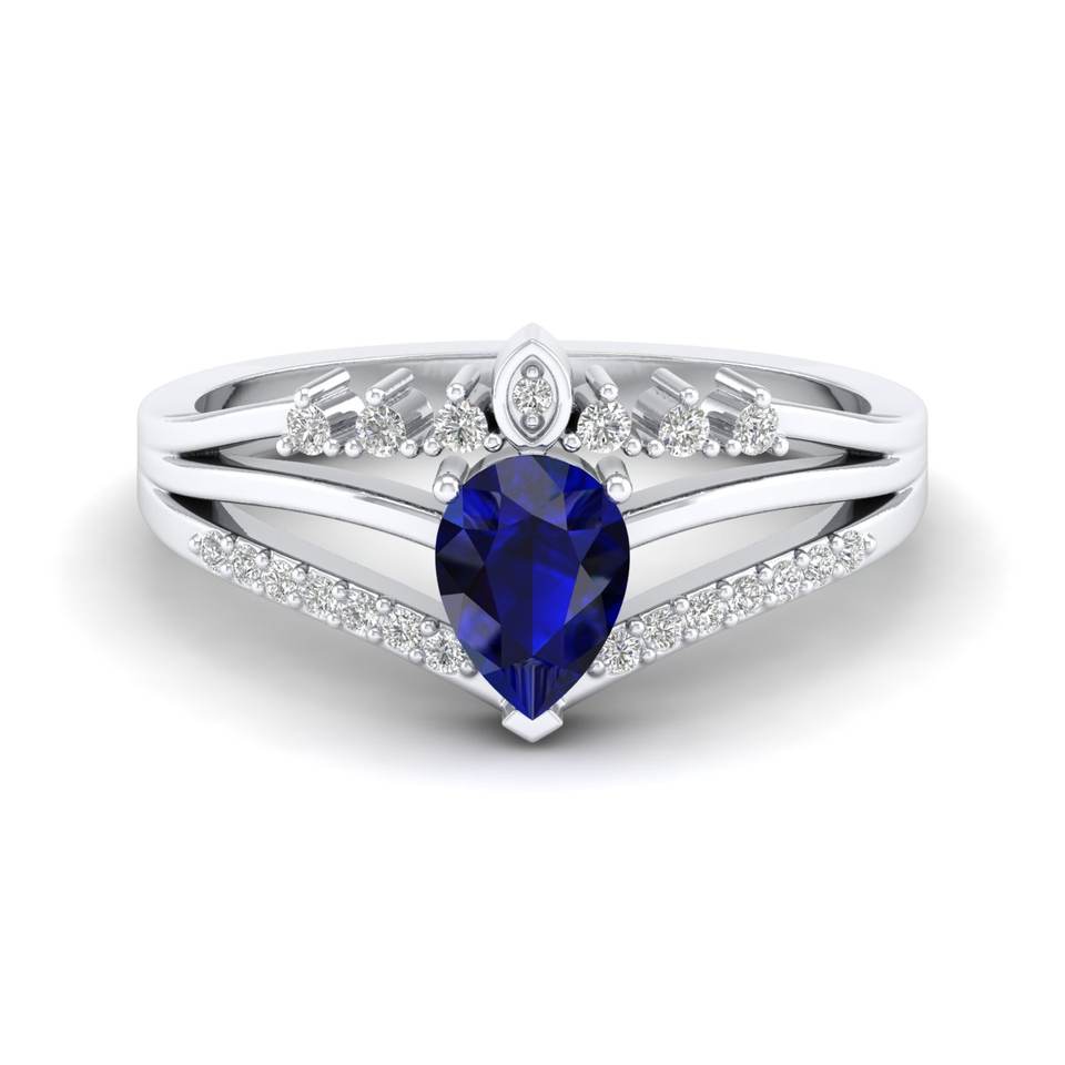 REYES Classic Pear Cut 0.75 Carat Blue Sapphire Gemstone Rings in 925 Sterling Silver Moissanite Sparkling Jewelry For Women