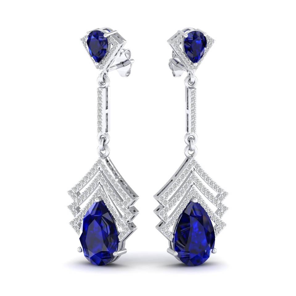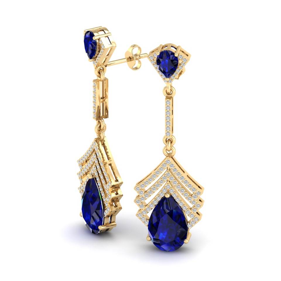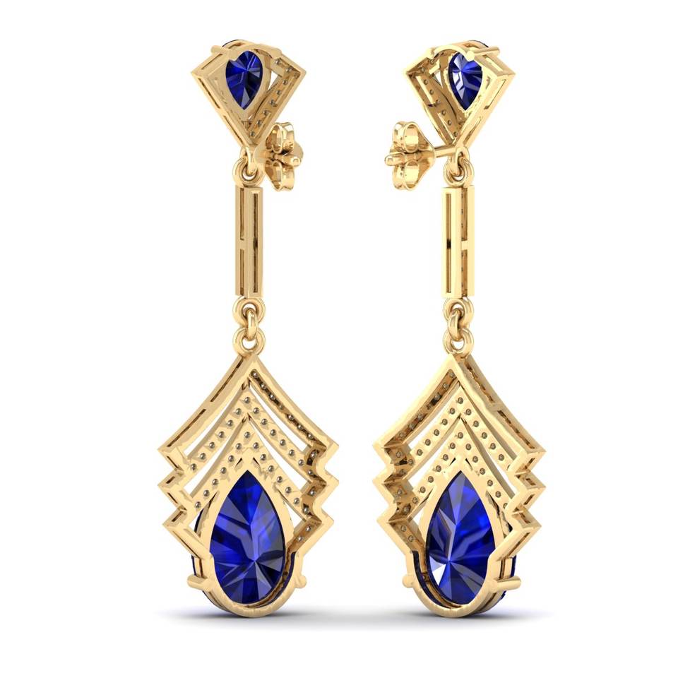 เครื่องประดับ REYES คลาสสิกทันสมัย ต่างหูทอง 14K ประดับมอสซาไนต์ทรงลูกแพร์ พลอยไพลินสีน้ำเงิน ของขวัญเครื่องประดับสำหรับงานแต่งงานสำหรับผู้หญิง