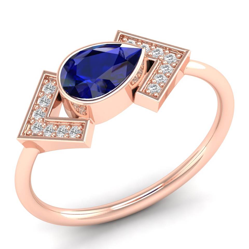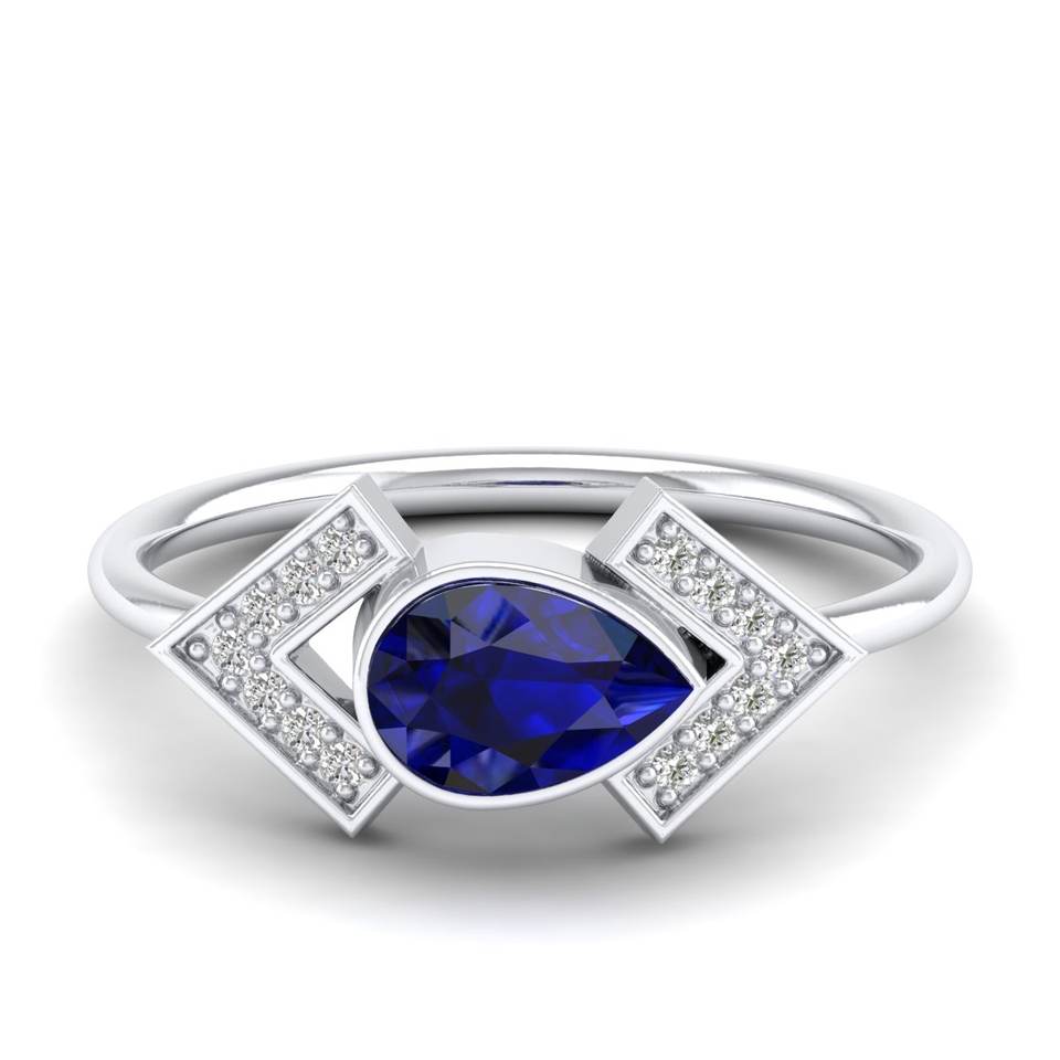 REYES แหวนหมั้นโมอิสซาไนต์เงินแท้ 925 สำหรับผู้หญิง ทรงลูกแพร์ 0.75 กะรัต ไพลินสีน้ำเงิน ของขวัญแต่งงาน เครื่องประดับชั้นดี