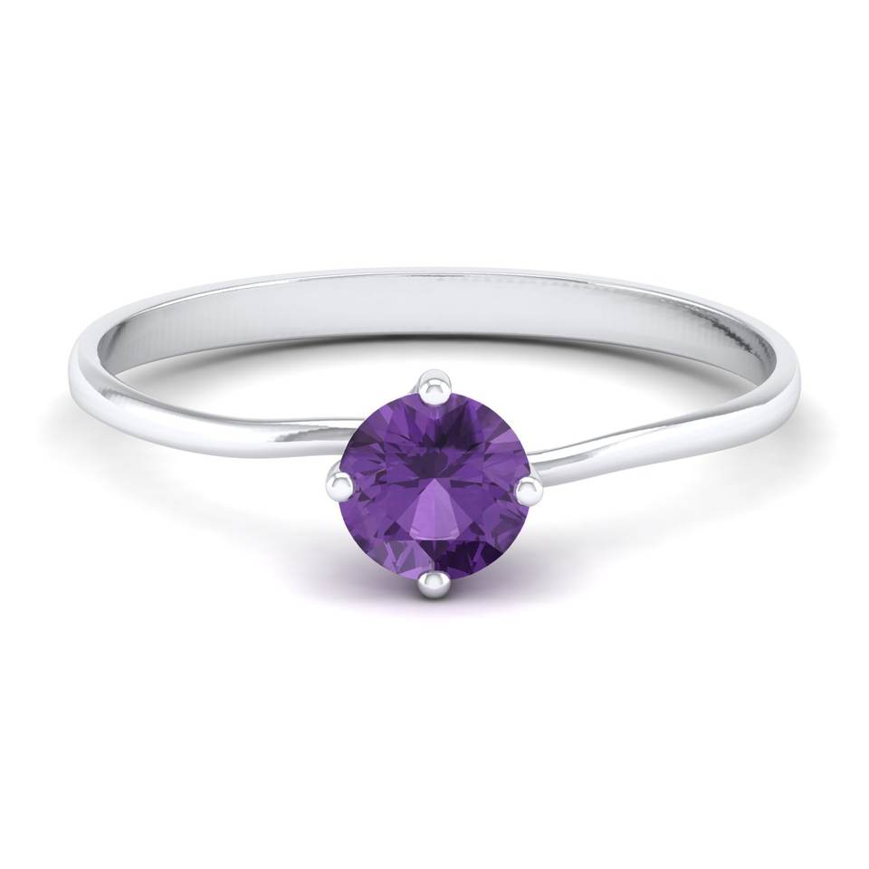 REYES Custom Design 14K Solid Gold IGI Certified Diamond Engagement Ring Round Cut 0.5 Carat Amethyst Gemstone Fine Jewelry