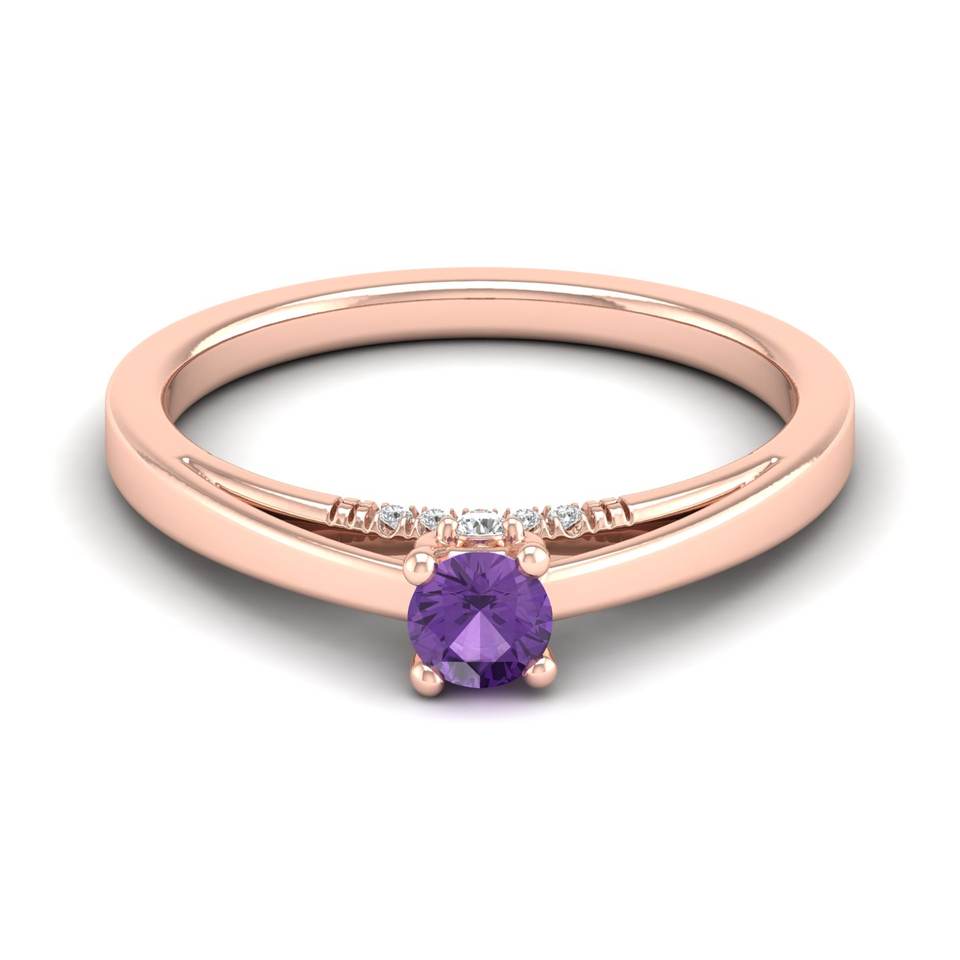 แหวนเพชรพลอยอเมทิสต์ทรงกลม 0.25 กะรัต REYES Customization แหวนหมั้นเพชรทองคำขาว 14K สำหรับผู้หญิง