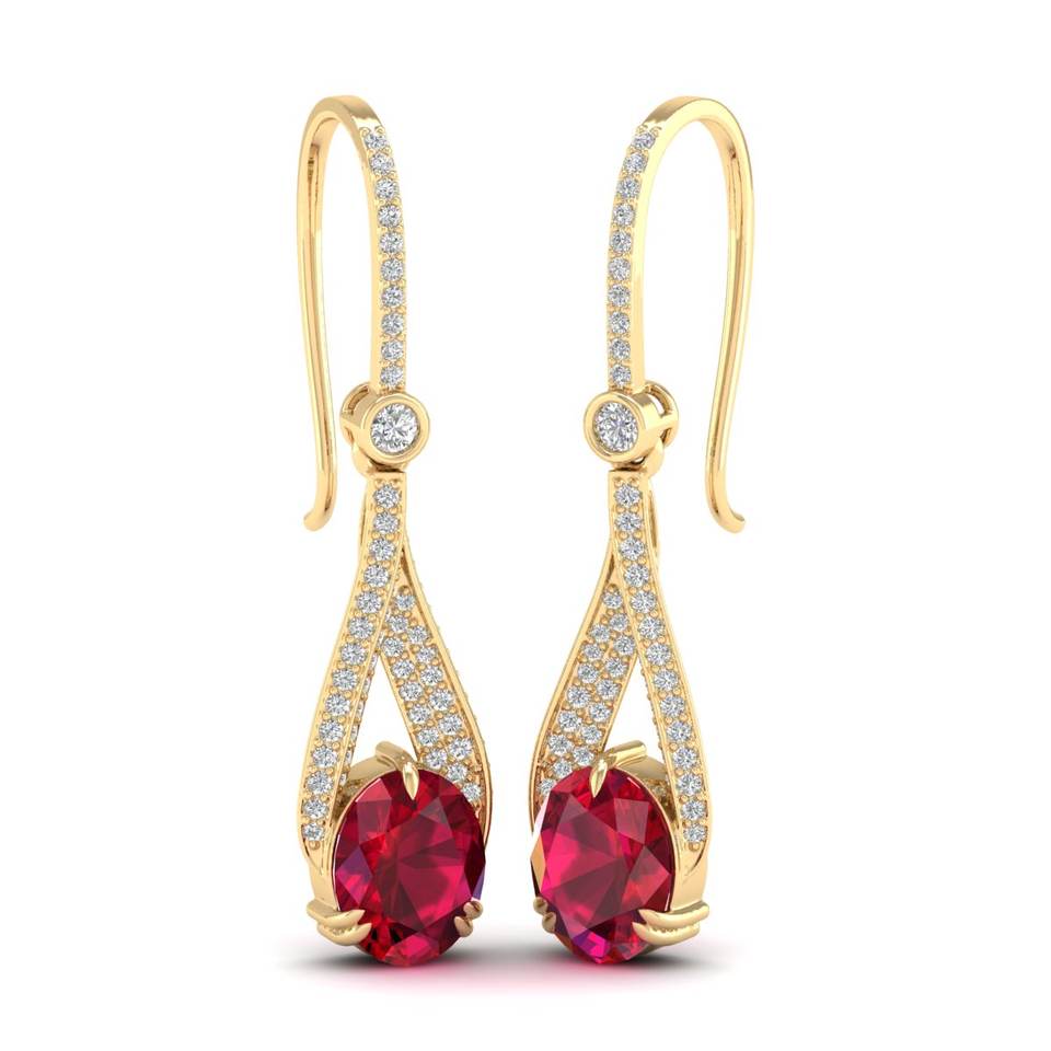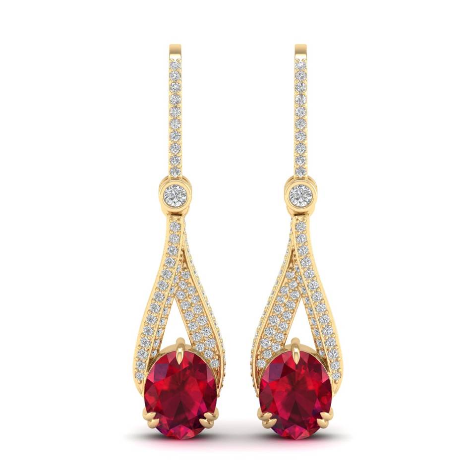 ต่างหูเพชรทรงหยดน้ำ REYES ทองคำแท้ 14K ประดับเพชรแท้รับรองโดย IGI ทรงกลมหรูหรา น้ำหนัก 4.84 กะรัต ประดับพลอยทับทิม เครื่องประดับชั้นดี