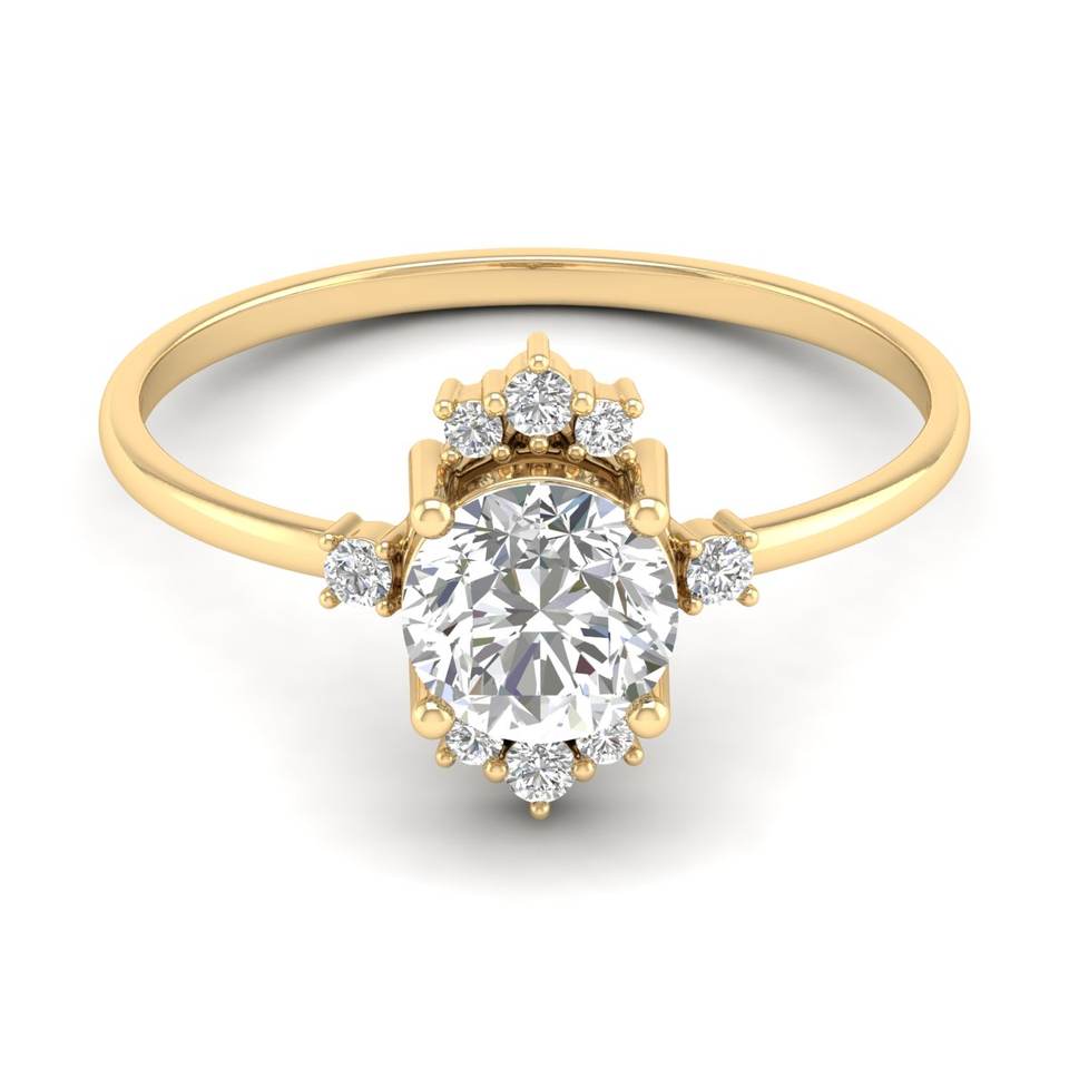 แหวนหมั้นเพชรโมอิสซาไนต์ทรงกลม 0.96 กะรัต ทองคำแท้ 14K แบบสั่งทำพิเศษจาก REYES สำหรับผู้หญิง พร้อมใบรับรอง GRA เครื่องประดับชั้นดี