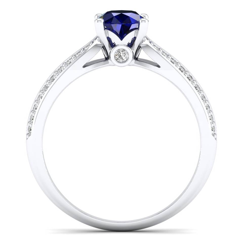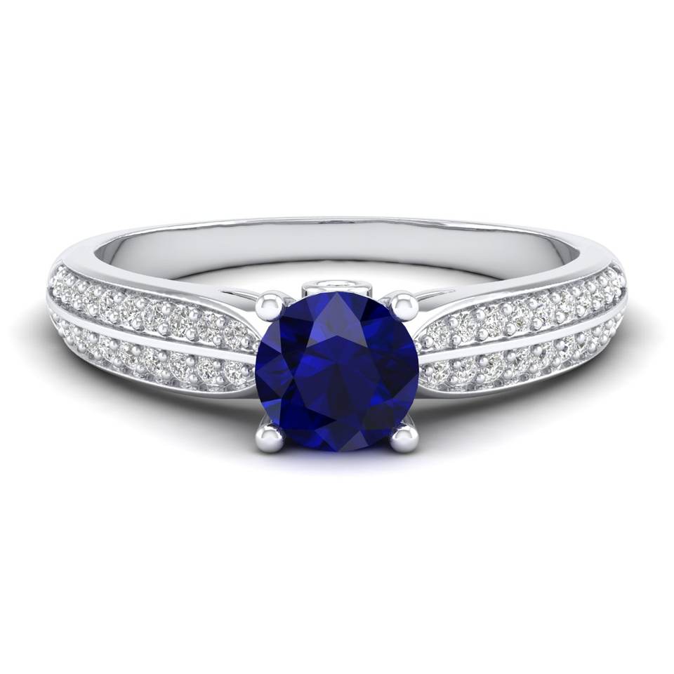 แหวนเพชรพลอยไพลินสีน้ำเงินทรงกลม 0.75 กะรัต ทองคำแท้ 14K แบบสั่งทำพิเศษจาก REYES พร้อมเพชรโมอิสซาไนต์ที่ได้รับการรับรองจาก GRA เครื่องประดับชั้นดี
