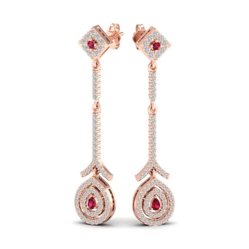 Reyes ต่างหูพลอยทับทิมประดับลูกแพร์ที่ละเอียดอ่อนต่างหูห้อยเพชรสีทอง9K 10K 14K 18K ต่างหูเจ้าสาวสำหรับผู้หญิง