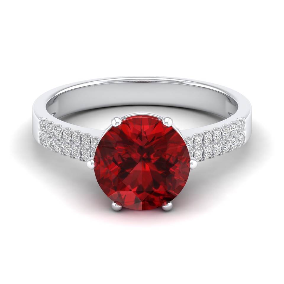 แหวนเพชรทรงกลมเจียระไนแบบบริลเลียนต์ 2.75 กะรัต ประดับพลอยโกเมน ทองคำแท้ 14K ดีไซน์หรูหราจาก REYES สำหรับผู้หญิง พร้อมบริการสั่งทำเครื่องประดับโมอิสซาไนต์