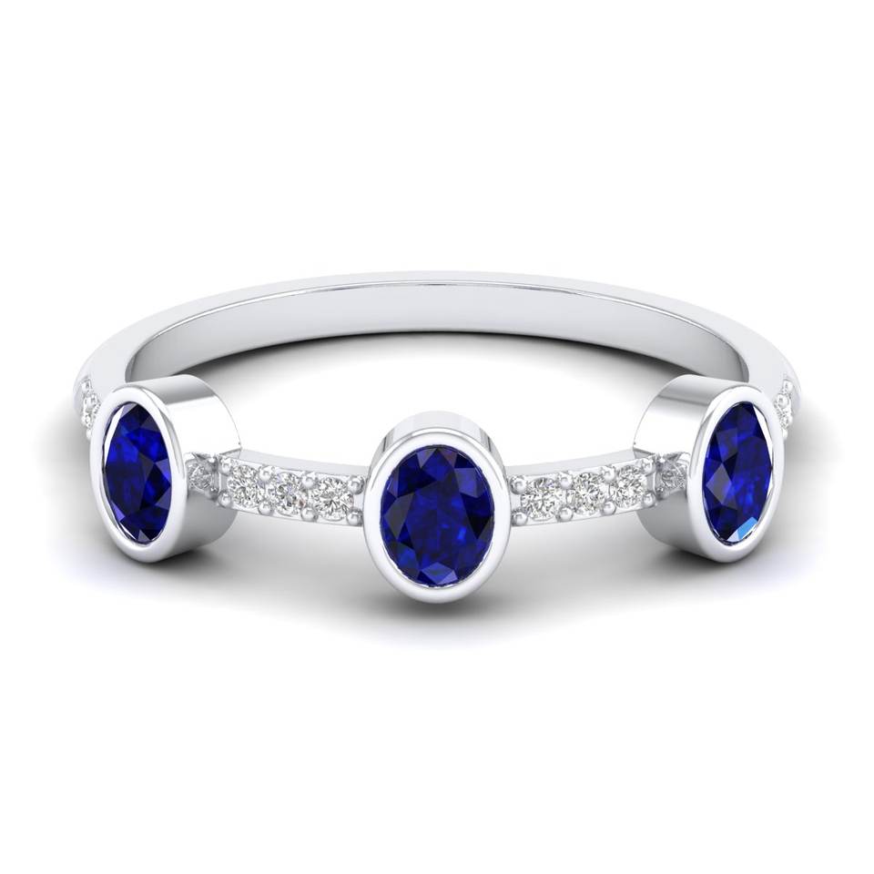 Reyes แหวนเพชรมอยซาไนต์สีโรสโกลด์14k ประดับพลอยแซฟไฟร์สีฟ้าสำหรับผู้หญิงเครื่องประดับของขวัญครบรอบ