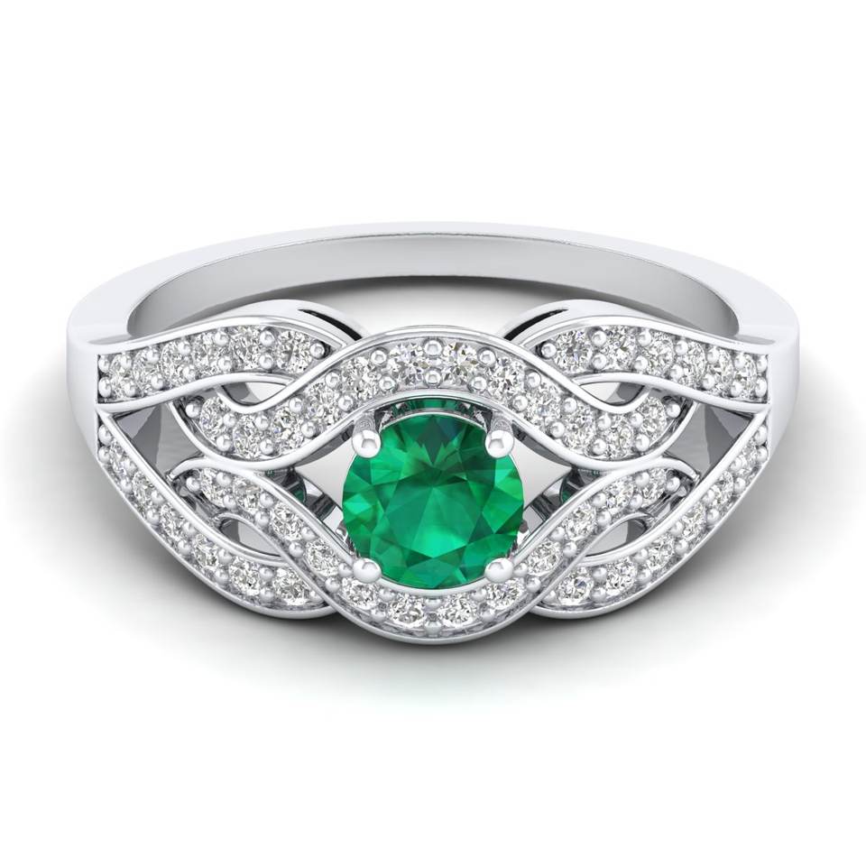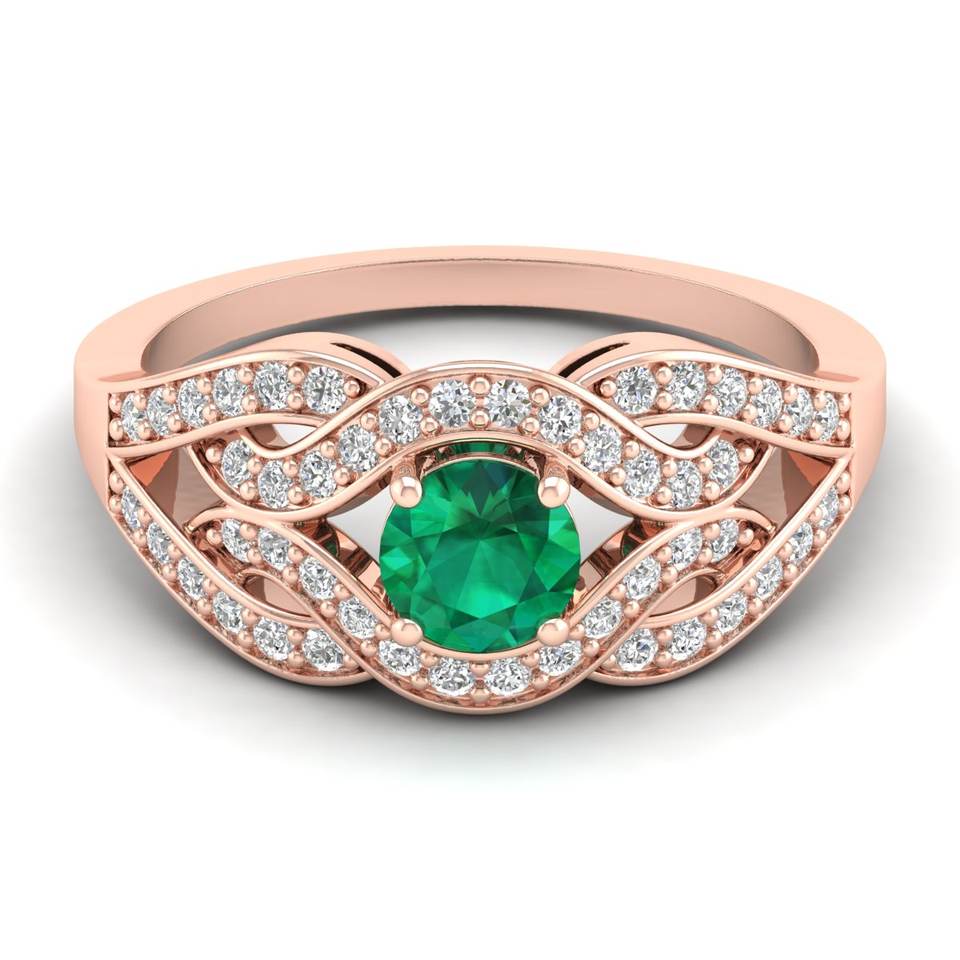 REYES ดีไซน์หรูหรา ทองคำแท้ 14K ทรงกลม ประดับมรกต 0.5 กะรัต พร้อมแหวนมอสซาไนต์ สำหรับผู้หญิง เครื่องประดับชั้นดีสุดคลาสสิก