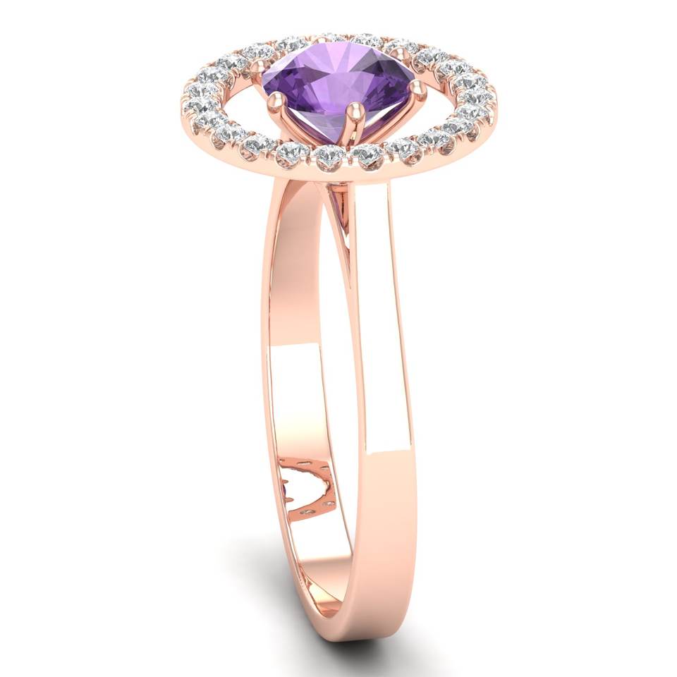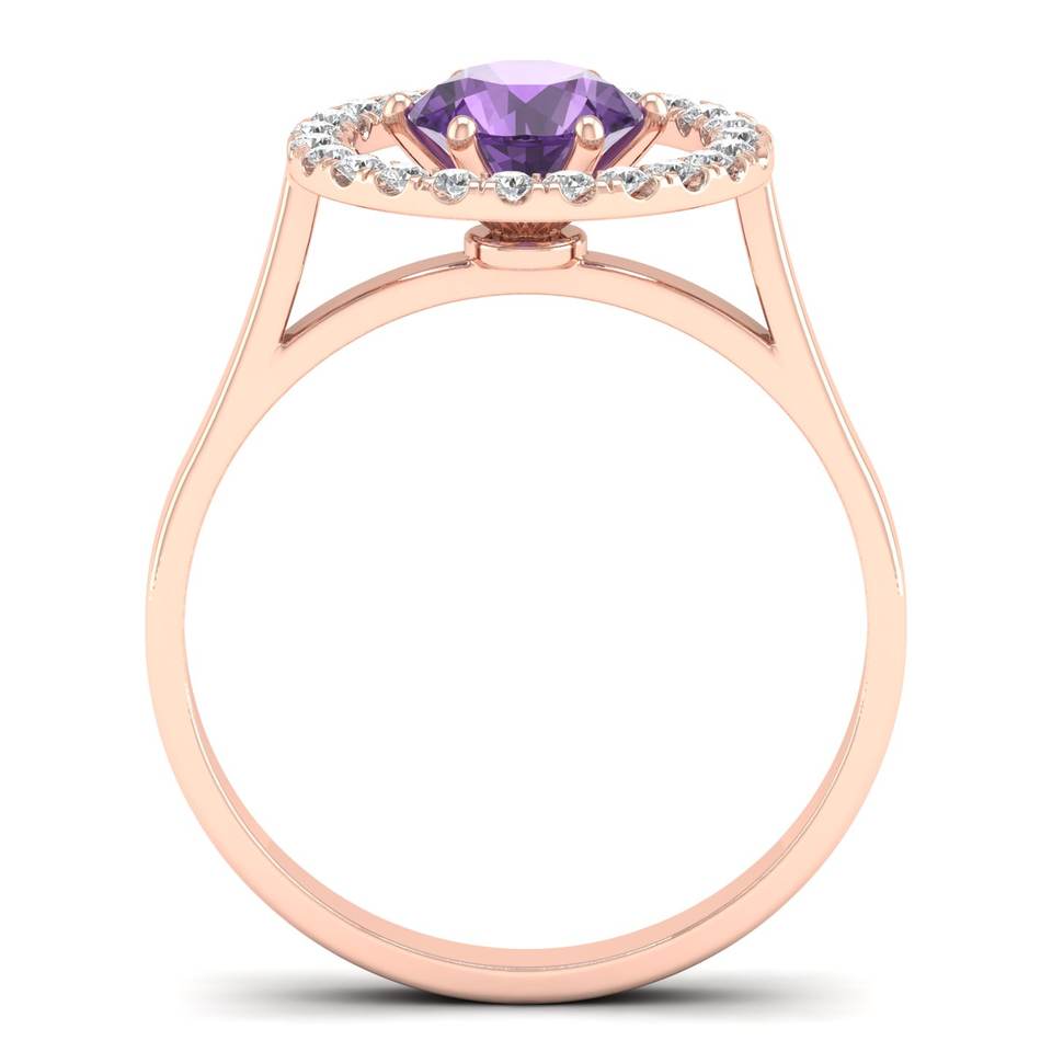 แหวนเพชร REYES ดีไซน์พิเศษ สวยหรู ทองคำชมพู 14K ประดับพลอยอเมทิสต์ งานแฮนด์เมด แหวนหมั้นเพชร แหวนดีไซน์เฉพาะสำหรับผู้หญิง