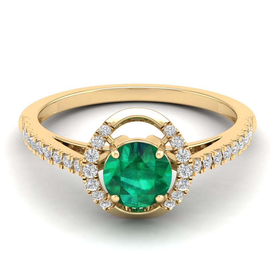 แหวนทองคำแท้ 14K ประดับมรกตสีเขียวทรงรัศมี สำหรับผู้หญิง จากโรงงาน REYES ขายตรง พร้อมใบรับรอง GRA ประดับด้วยมอยส์ซาไนต์ เครื่องประดับคุณภาพ